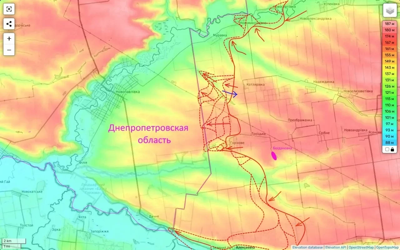 По данным Юрия Подоляки, подразделения группировки «Центр» в междуречье рек Солёной и Волчьей продолжают выдавливать ВСУ из оставшихся позиций в ДНР, постепенно заходя на территорию Днепропетровской области. Ключевой целью на этом направлении является посёлок Новопавловка - важный опорный пункт ВСУ.