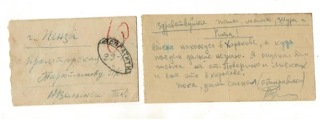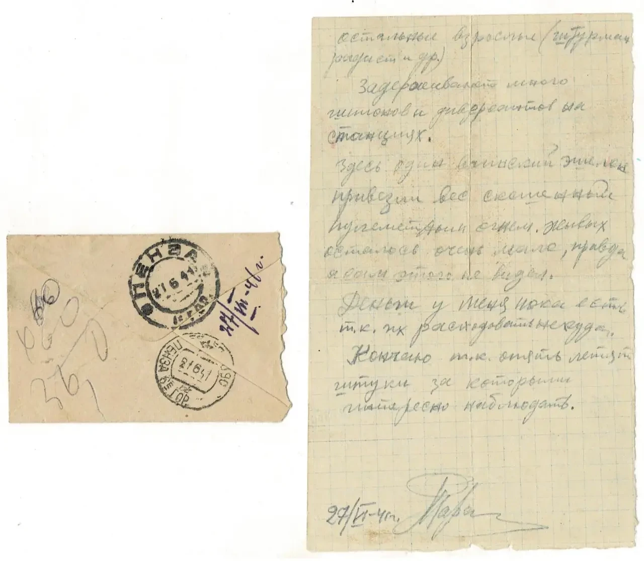 Итак, вот первое письмо, отправленное в совершенно крошечном конверте 90Х60 мм, и написанное карандашом. Оно не очень информативно. Но для родителей Кости и это была радость, да еще какая