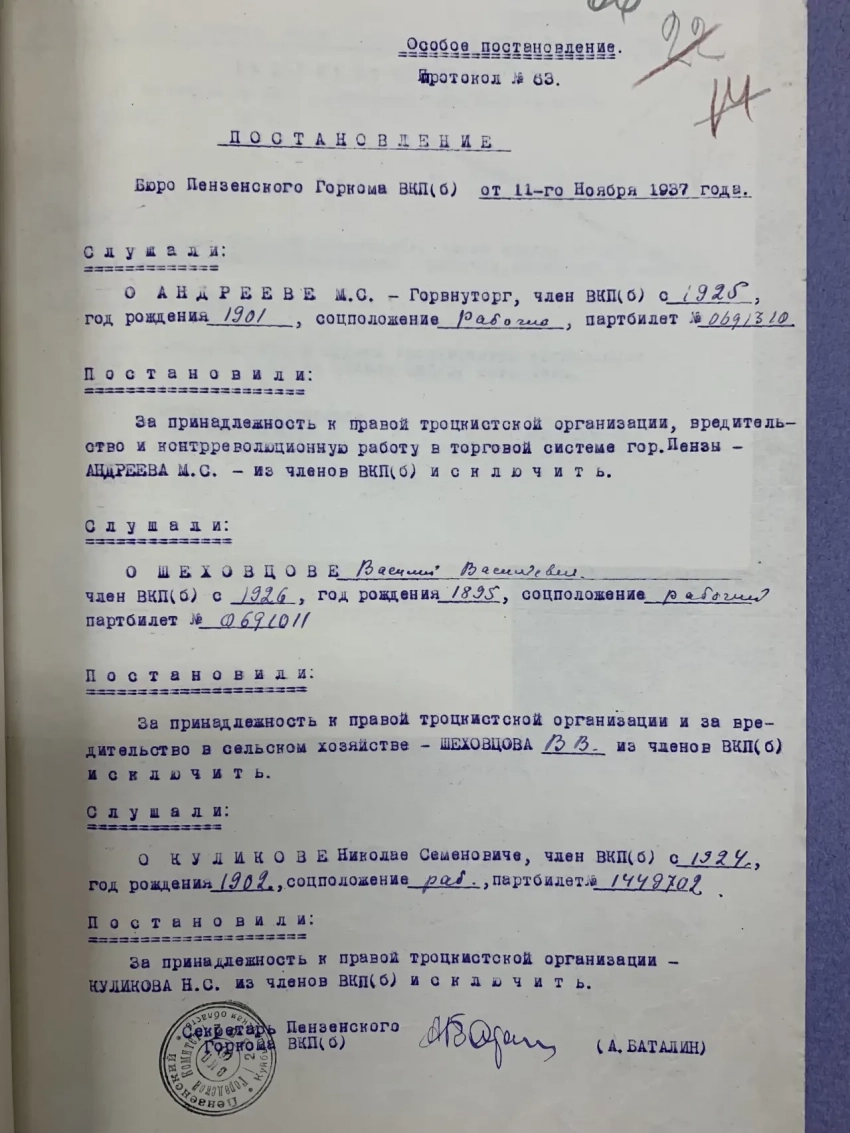 В любом случае странности во всем, что касается окружающей нас информации, были, есть и будут. Вот и на этот раз мой визит в областной партархив принес одну такую чрезвычайно интересную находку. На этот раз мне принесли для работы папку с протоколами закрытых заседаний бюро горкома ВКП(б) с результатами голосований за январь-ноябрь 1937 года.