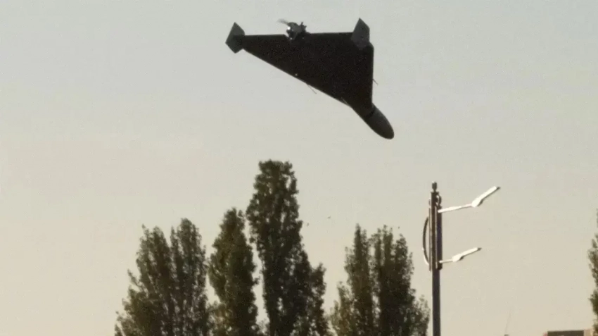 Российский БПЛА «Герань-2» пикирует на украинский объект. Фото AFP