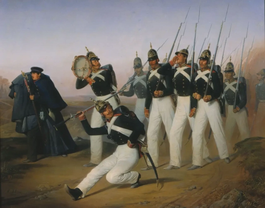 Песенники лейб-гвардии Семёновского полка. Художник Гебенс А. И. 1848 г. Военно-исторический музей артиллерии, инженерных войск и войск связи, Санкт-Петербург
