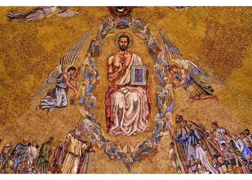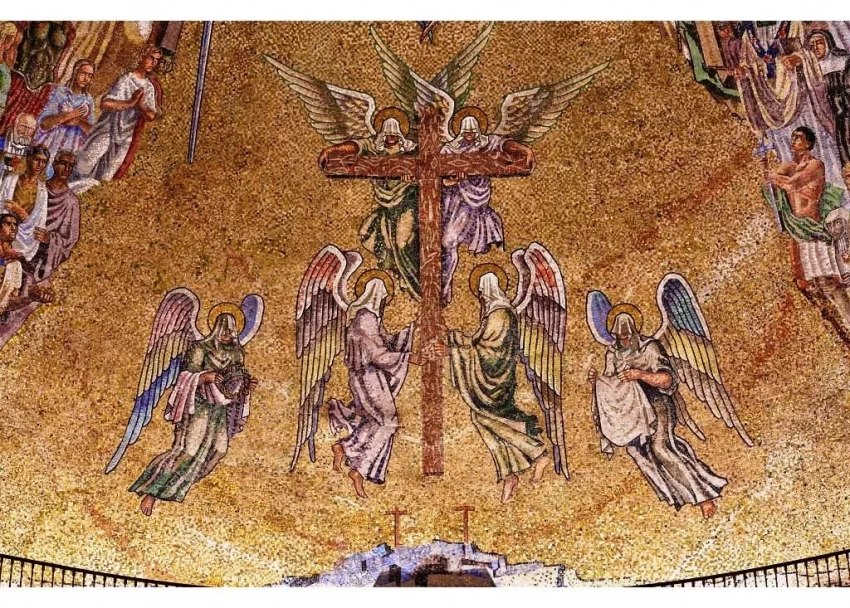 Над главным алтарем воздвигнут огромный купол высотой 42 м и диаметром 40,75 м. Он декорирован мозаичными картинами художника Сантьяго Падроса, состоящими из 6 миллионов керамических элементов. На картинах изображены как библейские сцены, так и кратко изложена вся история Испании как католической нации и изображены жертвы Гражданской войны 1936-1939 гг. Здесь же художник поместил свое изображение с женой.