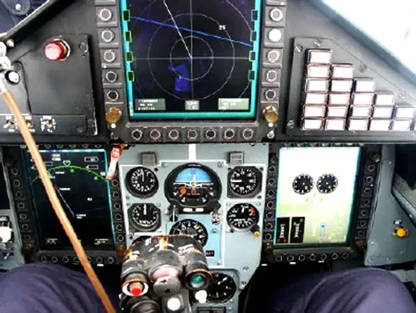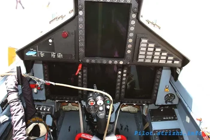 Она очень похожа на кабину самолета МиГ-29К, но «начинка» более современная. На месте оператора устанавливаются четыре многофункциональных дисплея, на один из которых дублируется информация с индикатора на лобовом стекле из первой кабины.