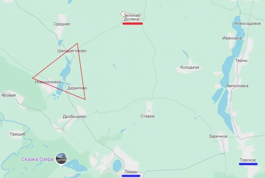 Соответственно, при выходе к автодороге в треугольнике Шандриголово-Новосёловка-Дерилово будет перекрыт маршрут Боровая – Красный Лиман, активно используемый противником. А при продвижении до села Дробышева может быть осуществлён охват Красного Лимана с севера.