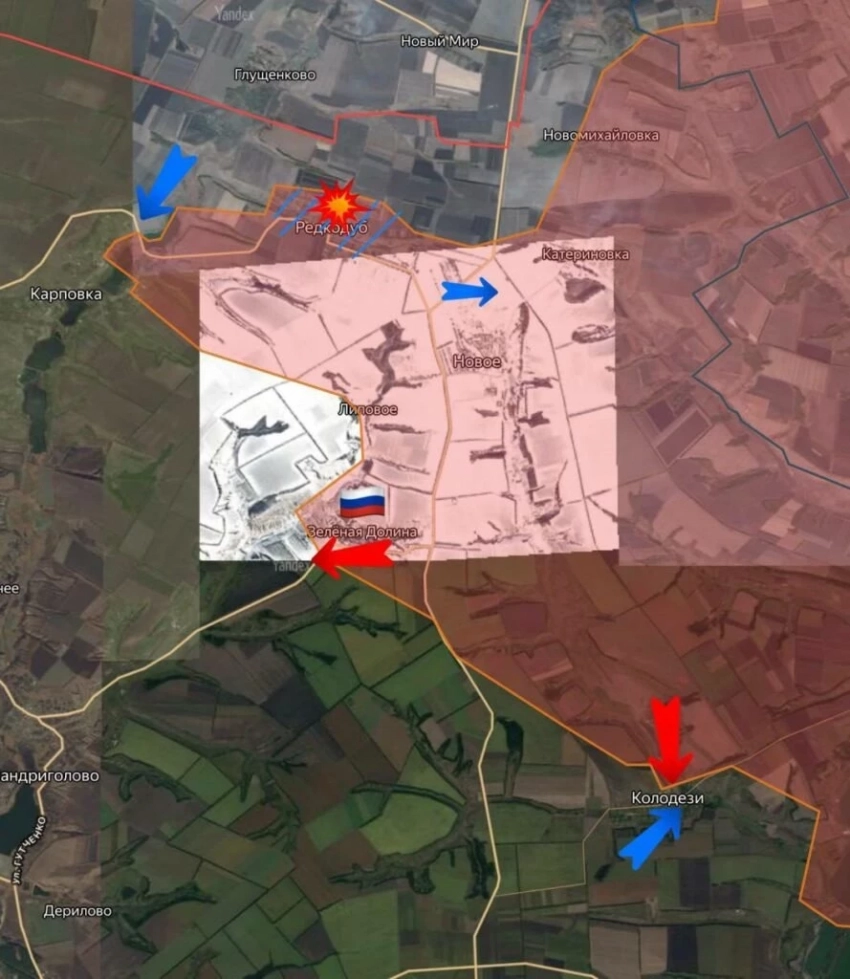 На Сумском направлении идут серьезные бои в районе Кондратовки. ВСУ контратакуют и в некоторых случаях контратакуют успешно. Российские войска продолжают давить на оборону ВСУ в районе Юнаковки. В Курском приграничье без существенных изменений в ЛБС.
