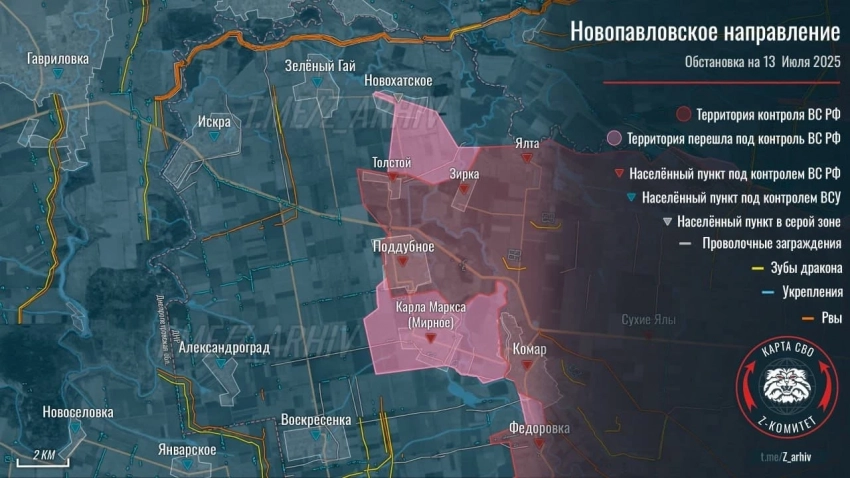 N4k предлагает ознакомиться с последними новостями из зоны проведения СВО, а также публикует свежую карту боевых действий, актуальную на 13.07.2025.