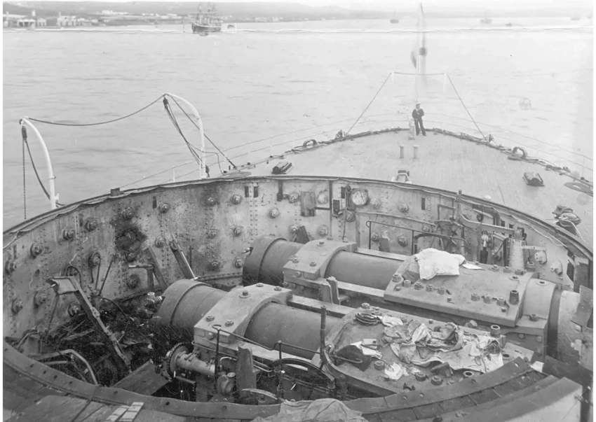 «Два наших новейших броненосца «Сенявин» и «Ушаков» находятся теперь в Учебно-артиллерийском отряде для ознакомления будущих комендоров с современными орудиями. Однако 10-дм пушки на них бутафорские. Стрелять из них запрещено, так как вследствие ошибки в чертежах они рвутся. Тем не менее, орудия было решено все-таки поставить на корабли, чтобы те хотя бы для вида походили на броненосцы».