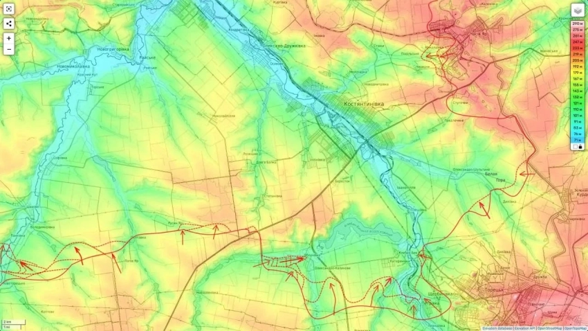 В свою очередь на Константиновском направлении атаки частей нашей 8А, постепенно набирают обороты. Начал поддеваться на север фронт в районе Полтавки и Русина Яра. Надеюсь, это только начало (как это было в апреле-мае во время прошлого броска).