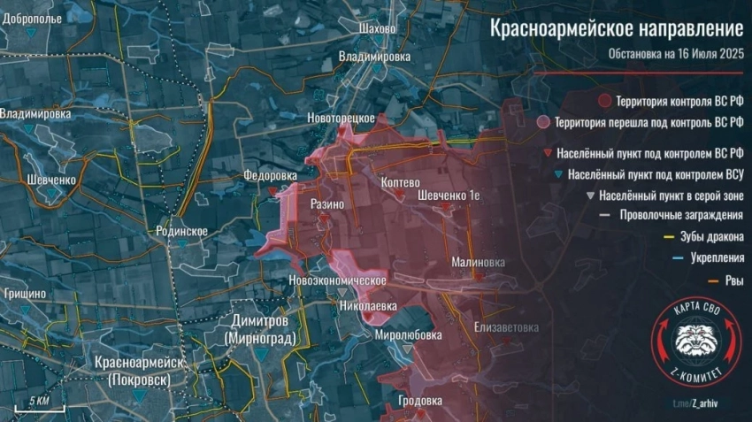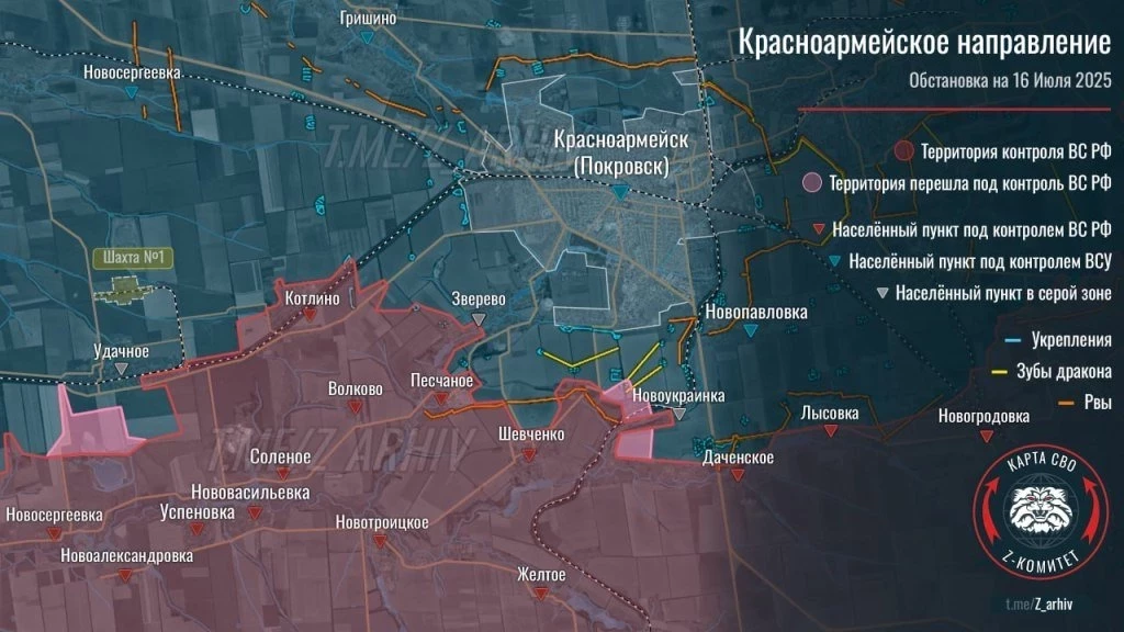 На Покровском (Красноармейском) направлении ВС России создают условия для охвата Мирнограда с севера. Наши войска пробиваются в направлении Родинского, что в случае успеха позволит взять под контроль северную дорогу в Мирноград. Идут бои высокой интенсивности.