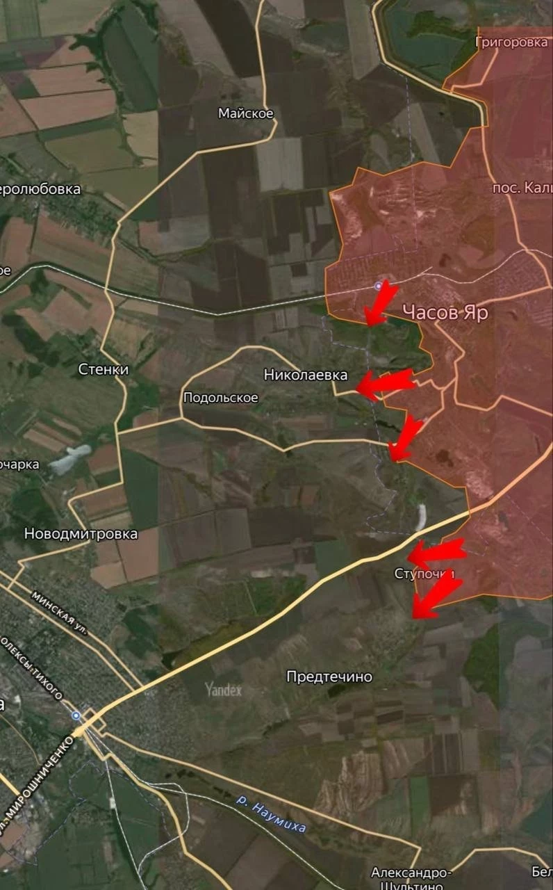 На Часовярском направлении в самом городе продолжаются бои в районе Днепровского пруда и в мкр. Шевченко и Южный. В районе Ступочек, нашими войсками село практически освобождено, идёт дозачистка.