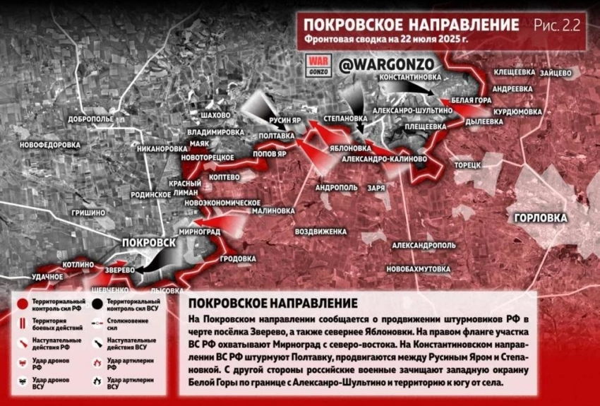 ВС РФ ведут ожесточённые бои в Новоукраинке, Чунишино и Сухом Яре на Покровском направлении: свежие данные от 25.07.2025