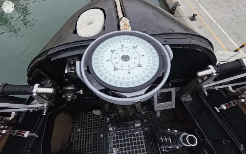 Верхняя носовая часть рубки с габаритным компасом. Отсюда командир управляет кораблём при входе и выходе из порта
