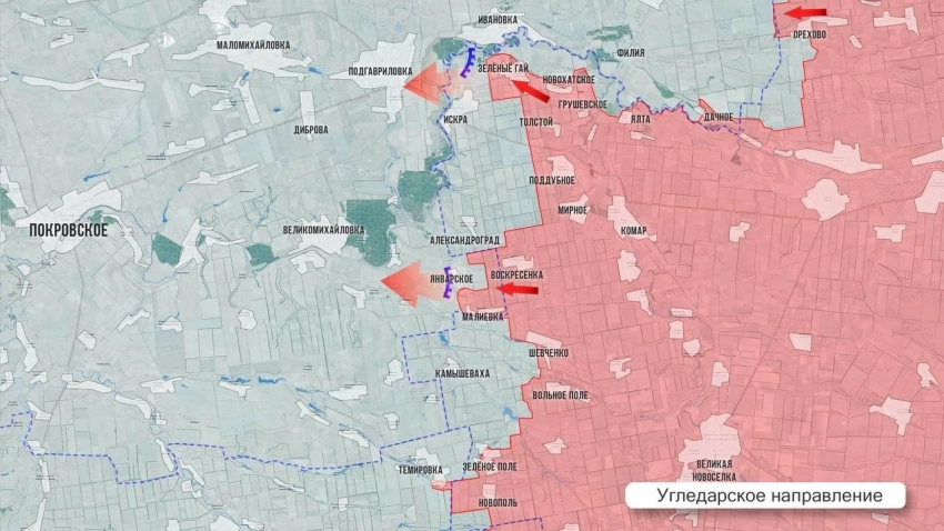 На Угледарском направлении ВС РФ продвинулись у Темировки на участке более 1 ки в глубину и по фронту. Из освобождённой Малиевки сообщают, что Украина построила «зубы дракона» и рвы по всей деревне, но оставила их без людей и потеряла. Наши тем временем наступают западнее Малиевки в глубину Днепропетровской обл. Выше по фронту есть продвижение от освобожденного Зеленого Гая, наши подошли к Ивановке. Также ВС РФ заняли лесной массив западнее Дачного, расширяя зону контроля в Днепропетровской обл.