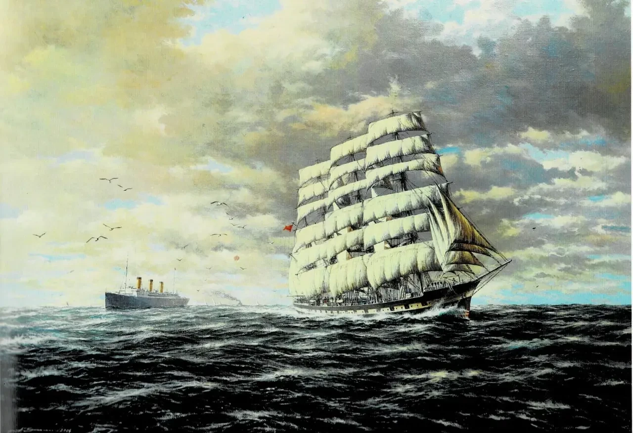6. Барк «Товарищ» в Северном море. 1927 г. Холст, темпера, 70х100 см. 2006 г.