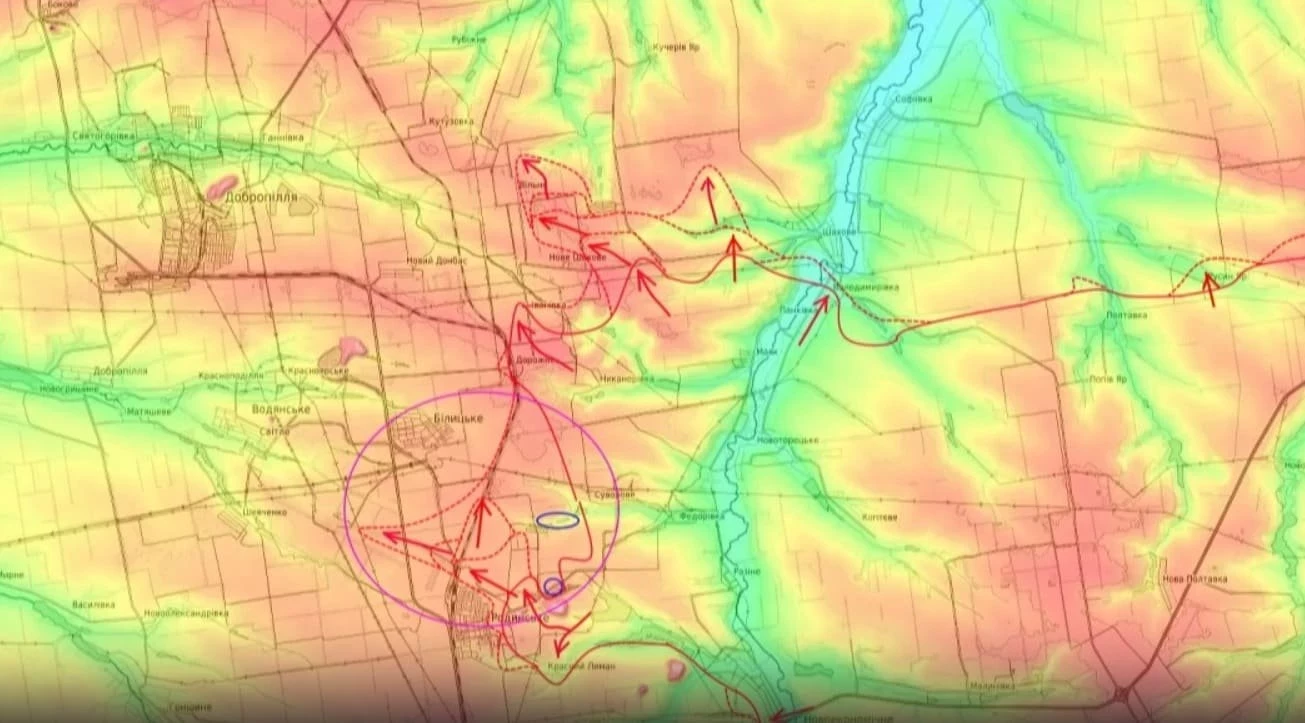 Вместе с этим военный блогер указал на то, что российские бойцы зачищают территорию восточнее железной дороги на Доброполье и здесь у противника ещё есть очаги сопротивления. Однако от своих основных сил противник отрезан и его части сражаются в окружении.