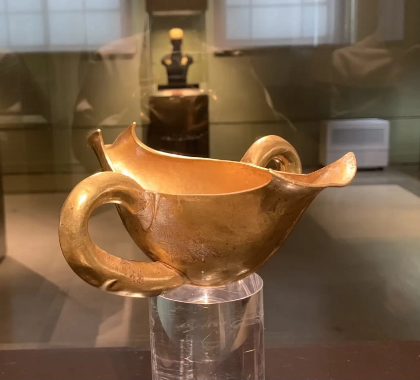 Ладьевидный кубок с двумя ручками. Золото. Точных аналогий среди сосудов эпохи бронзы в Эгейском мире не имеет. Вероятно имел ритуальное значение…