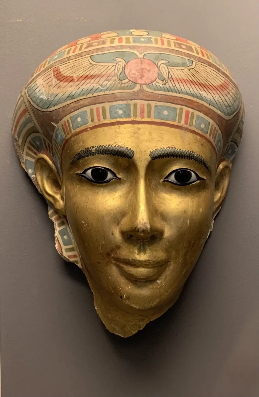 А это золотая погребальная маска женской мумии. Птолемеевский Египет, I век до н.э.