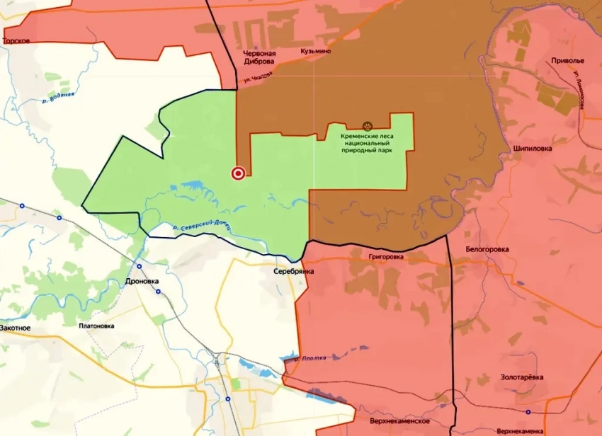 Помимо этого, вражеский ресурс указывает на вклинивание наших штурмовиков с севера в направлении Серебрянки и запада в образовавшийся для ВСУ «карман». Таким образом, даже DeepState признает образование очередного окружения. Фактически, ВС РФ разрезают силы противника на небольшие группы, лишая их возможности снабжения и эвакуации.