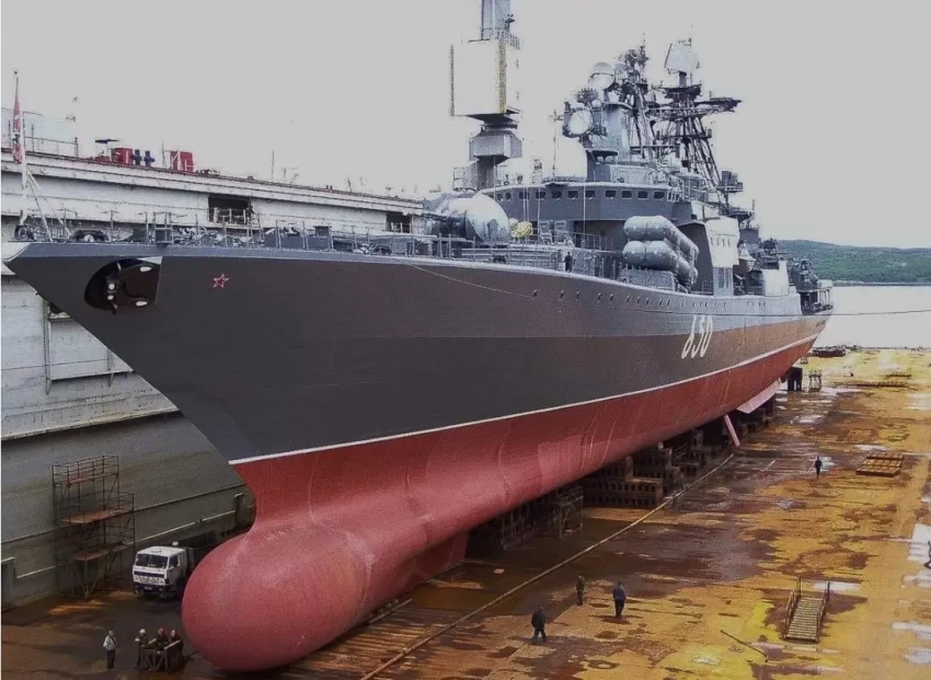 Корабль находится в ремонте на 35-м СРЗ с 2014 года, и оптимизма в постоянных переносах сроков вправо не наблюдается. Капитальный ремонт и не менее капитальная модернизация должны были завершиться в этом, 2025 году, но… Многие источники говорят о том, что этого не произойдет, и никто не берется назвать точные сроки окончания работ и начало испытаний и приемки.