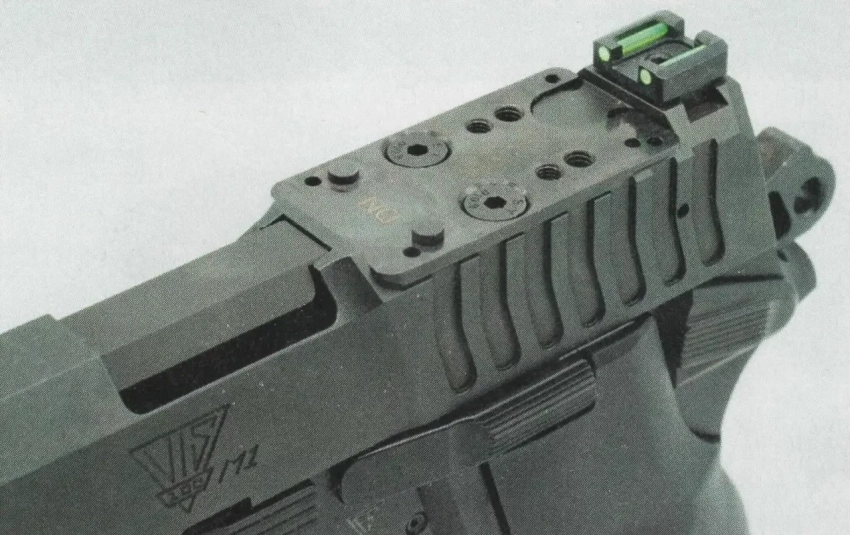 Затвор — стальной. На тыльной его части имеется посадочное место для установки коллиматорного прицела. Причем, в отличие от других Optic Ready-пистолетов, на VIS 100 M1 не требуются различные адаптеры. Вместо этого имеется одна пластина-адаптер с несколькими резьбовыми и штифтовыми (диаметра 3 и 3,9 мм.) отверстиями, обеспечивающими установку разнообразных моделей прицелов, таких как Burris, Docter, Vortex, Shield. В общем случае посадочное место закрыто пластиной-крышкой.