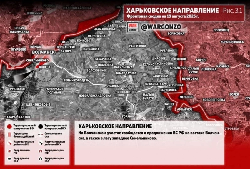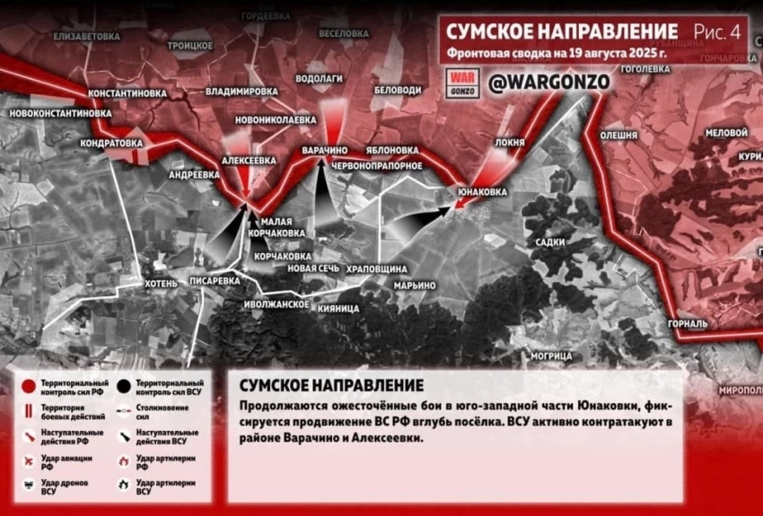 Карта боевых действий на Украине. Ситуация в зоне СВО на 19.08.2025