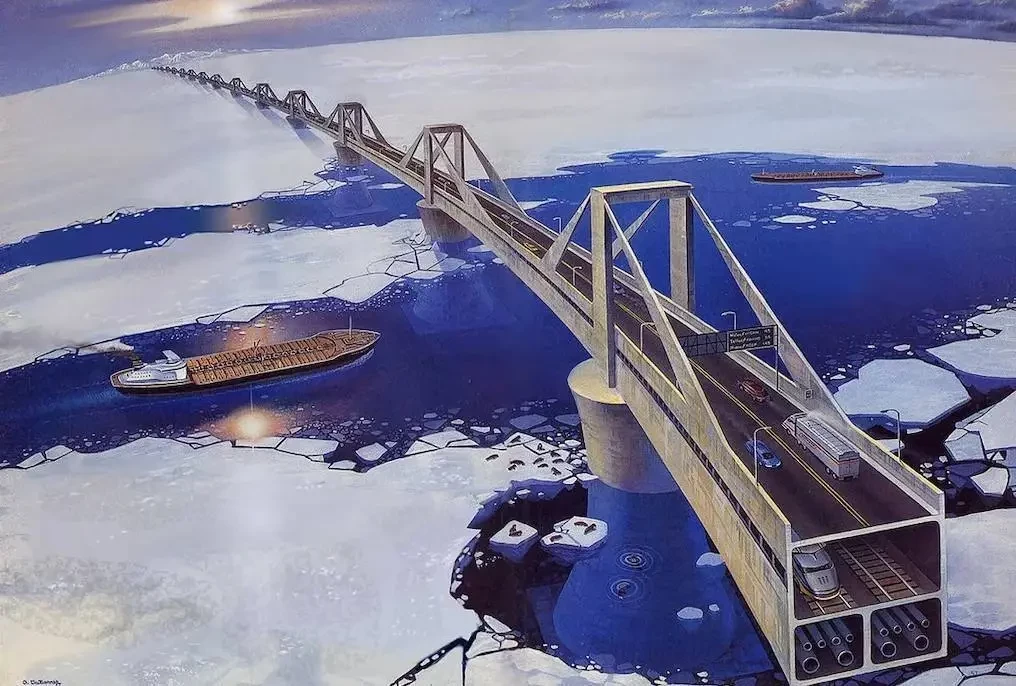 Всех переплюнул по степени утопичности проект Петра Борисова образца 1950 года, по которому предполагалось перекрыть Берингов пролив даже не мостом, а дамбой. Разумеется, с железнодорожным и автомобильным сообщением. Идея мегастройки в том, что холодная вода из Тихого океана оказалась бы заблокирована – теплый Гольфстрим согревает в итоге советский север, а с ним и половину СССР. Только плата за подобные утопии оказалась в перспективе очень весомой. Напрочь замерзало Приморье, Камчатка, Сахалин, Япония и Полинезия. Впрочем, затраты на строительства были настолько астрономическими, что всё ограничилось карандашными набросками. Чему нельзя не порадоваться.