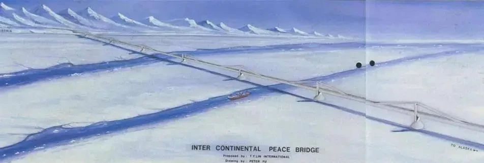 Следующей вехой стал проект китайца Тунг-Йен Лина, известного строителя и исследователя. Жил и работал он в Соединенных Штатах и прославился работами в области предварительно напряженного бетона. В 1958 году он предложил «Межконтинентальный мост мира», а в 1986 году вручил Рейгану подробный план его конструкции. Китаец был упорный – для продвижения проекта он зарегистрировал контору Inter-Continental Peace Bridge и даже просчитал стоимость строительства. Получилось очень оптимистично – не более 1 млрд. долларов. Впрочем, в 1994 году он в четыре раза увеличил затраты. Но так ничего по проекту не срослось.