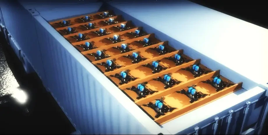 Размещение дронов в контейнере, в кузове грузовика, в ходе украинской операции «Паутина»