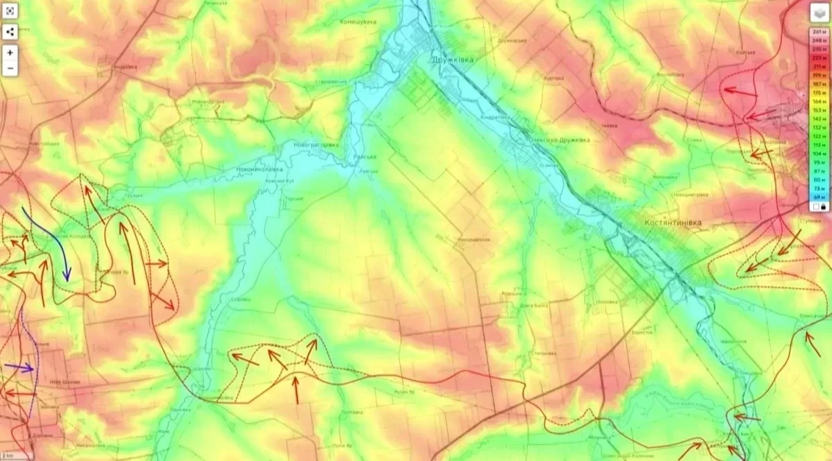 Кроме того, усилилось давление на позиции ВСУ со стороны Часова Яра - таким образом, создаётся угроза полуокружения всей киевской группировки в Константиновке.