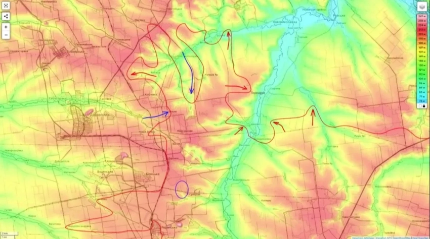 На фоне истощения резервов противника, российские войска активно продвигаются вперед. Сложная конфигурация фронта в районе севернее Родинского, которую эксперт охарактеризовал как «слоеный пирог», постепенно разрезается в пользу ВС РФ.