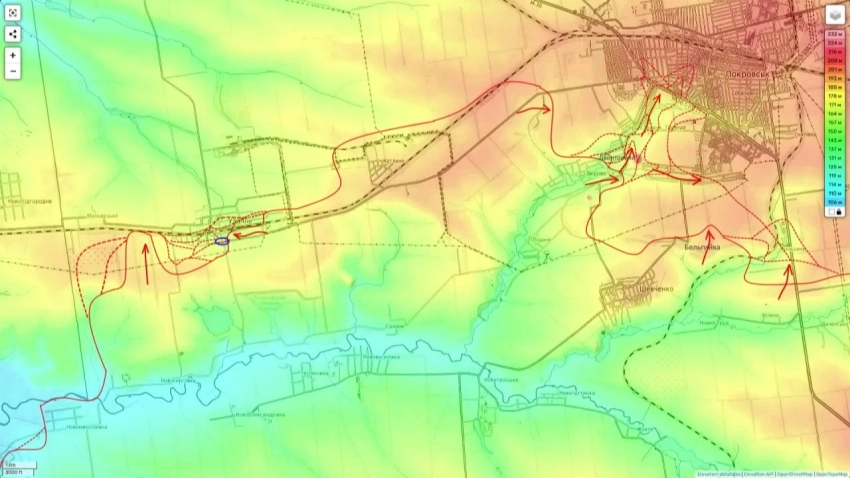 Главные бои продолжаются в районе Покровска, где стороны ведут ожесточенные уличные сражения. Как обозначает эксперт, полного контроля ни у одной из сторон пока нет.
