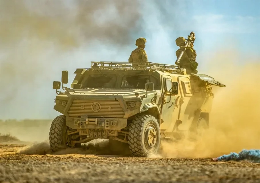 Для защиты от воздушных угроз техники на марше используется вариант с двумя расчётами ПЗРК. Первый – в головной части колонны, второй – в хвостовой. Огонь зенитными ракетами по воздушным целям ведётся в том числе в движении – когда бронеавтомобиль, перевозящий расчёт несколько сбавляет скорость, но при этом не останавливается.