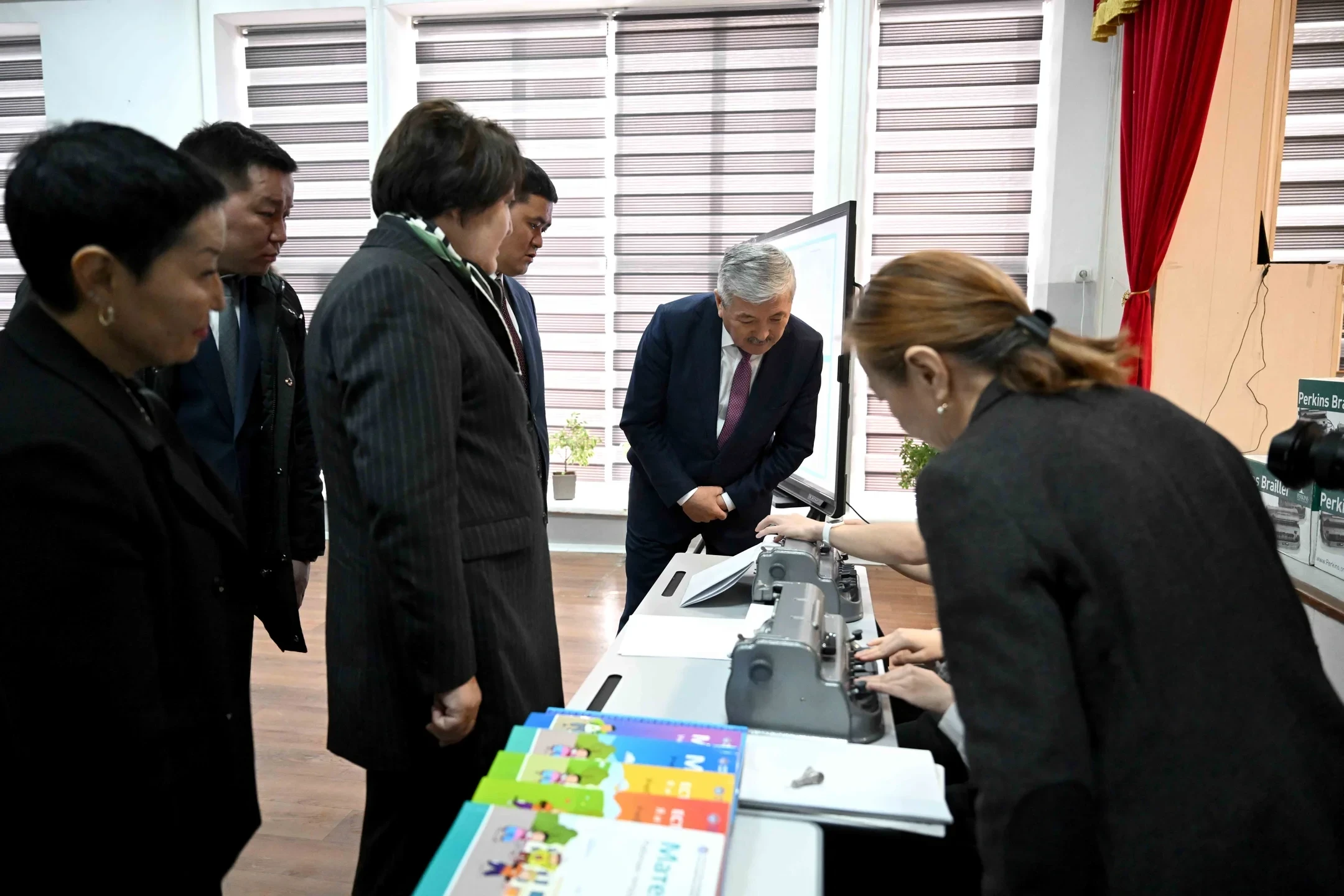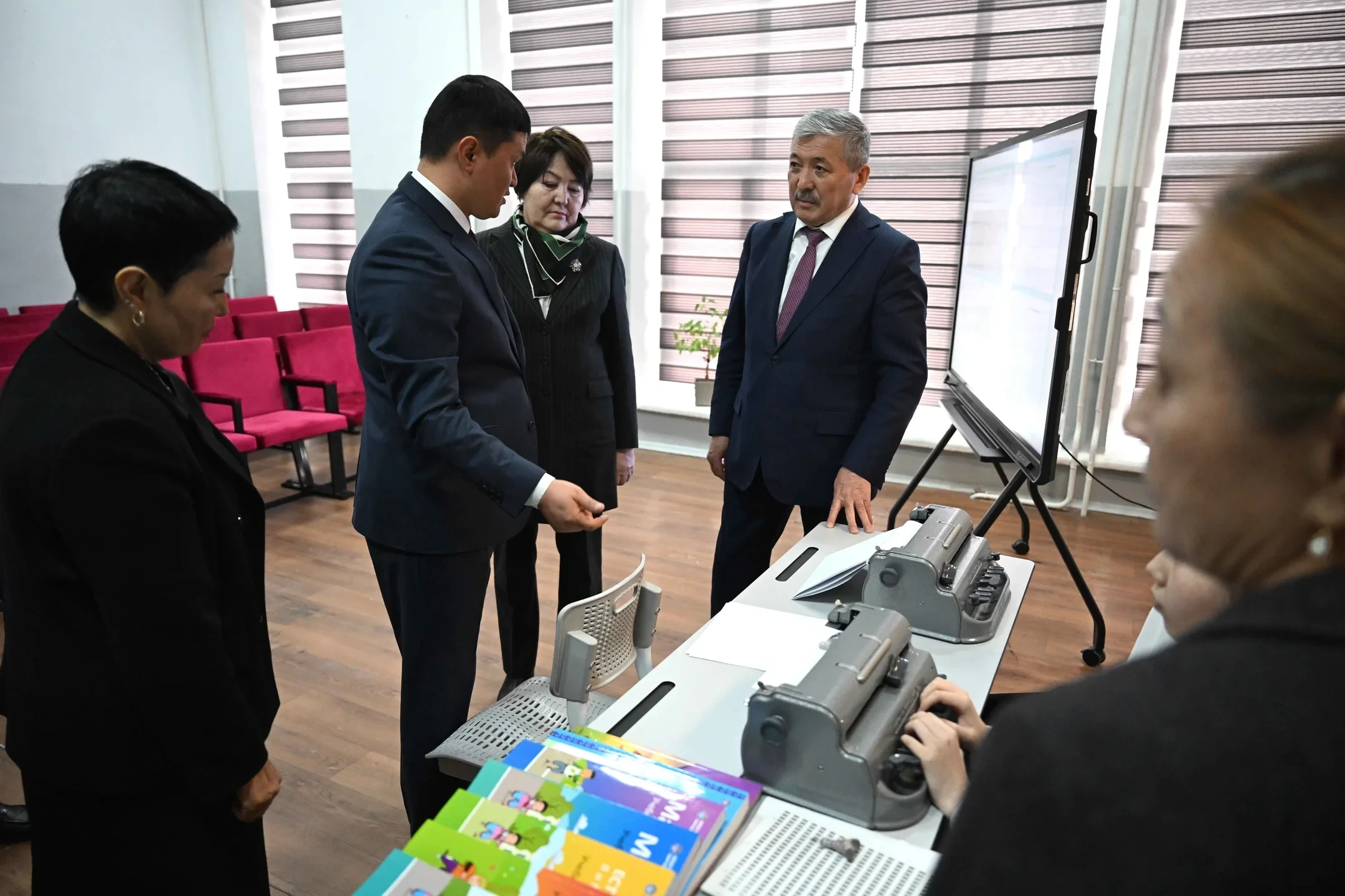 Председатель кабинета министров Кыргызстана, Адылбек Касымалиев, передал 10 машинок Perkins Brailler Classic, предназначенных для обучения детей с нарушениями зрения, в Специальную школу-интернат в Бишкеке.