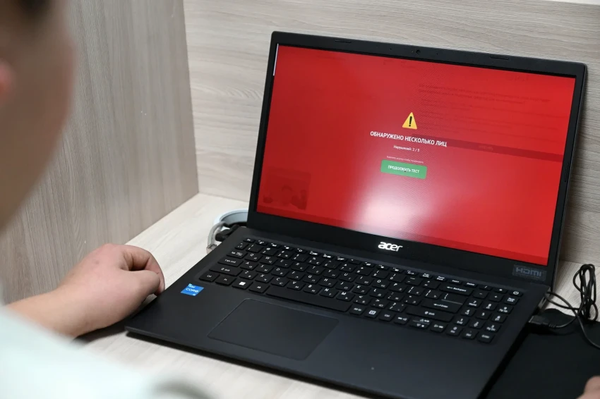 Система фиксирует движения головы курсанта, и если он отвлекается от экрана, это считается нарушением. Также, если в поле зрения камеры появляются посторонние лица, это может привести к аннулированию результатов тестирования.