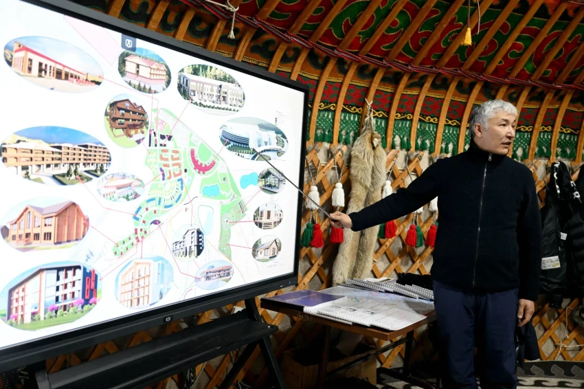 Азамат Кадыралиев, заместитель главы Администрации Президента, представил преимущества проекта, включая его стратегическое расположение, экологичность, инвестиционную привлекательность и международный уровень.