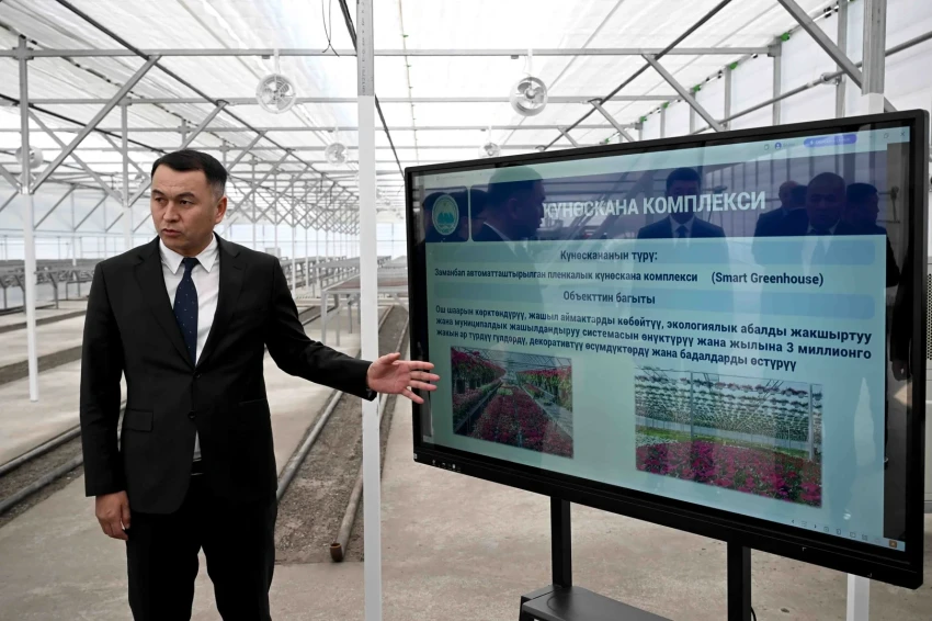 Затем глава правительства осмотрел новую теплицу, где будут выращиваться цветы, декоративные растения и саженцы для благоустройства и озеленения территории города Ош.