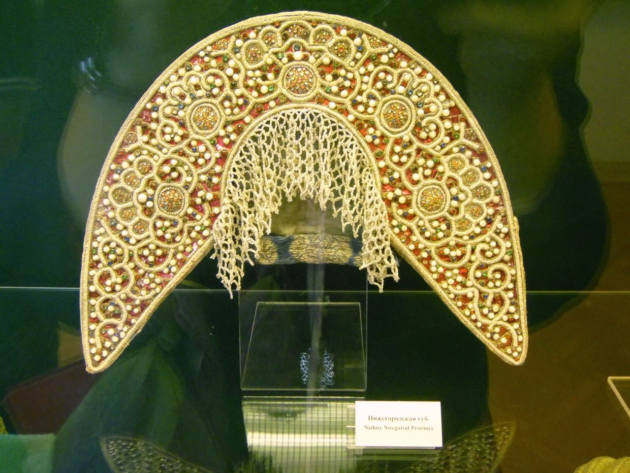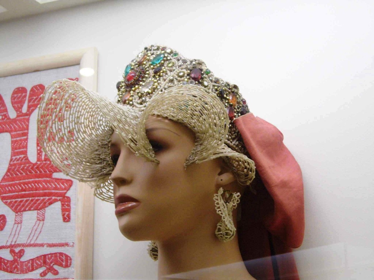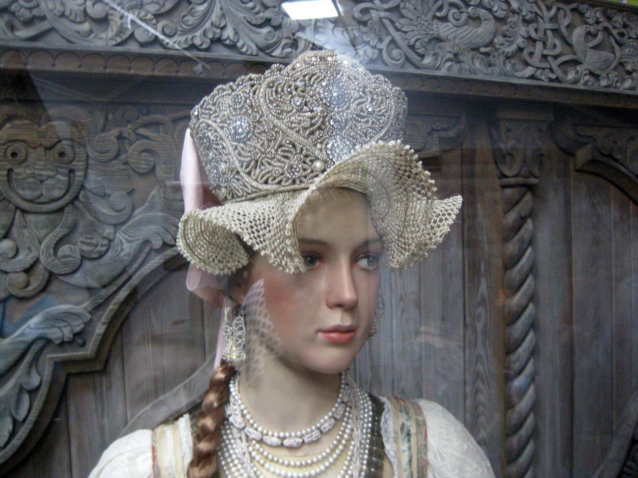 Экспозиция музея декоративно-прикладного искусства . Девичий головной убор