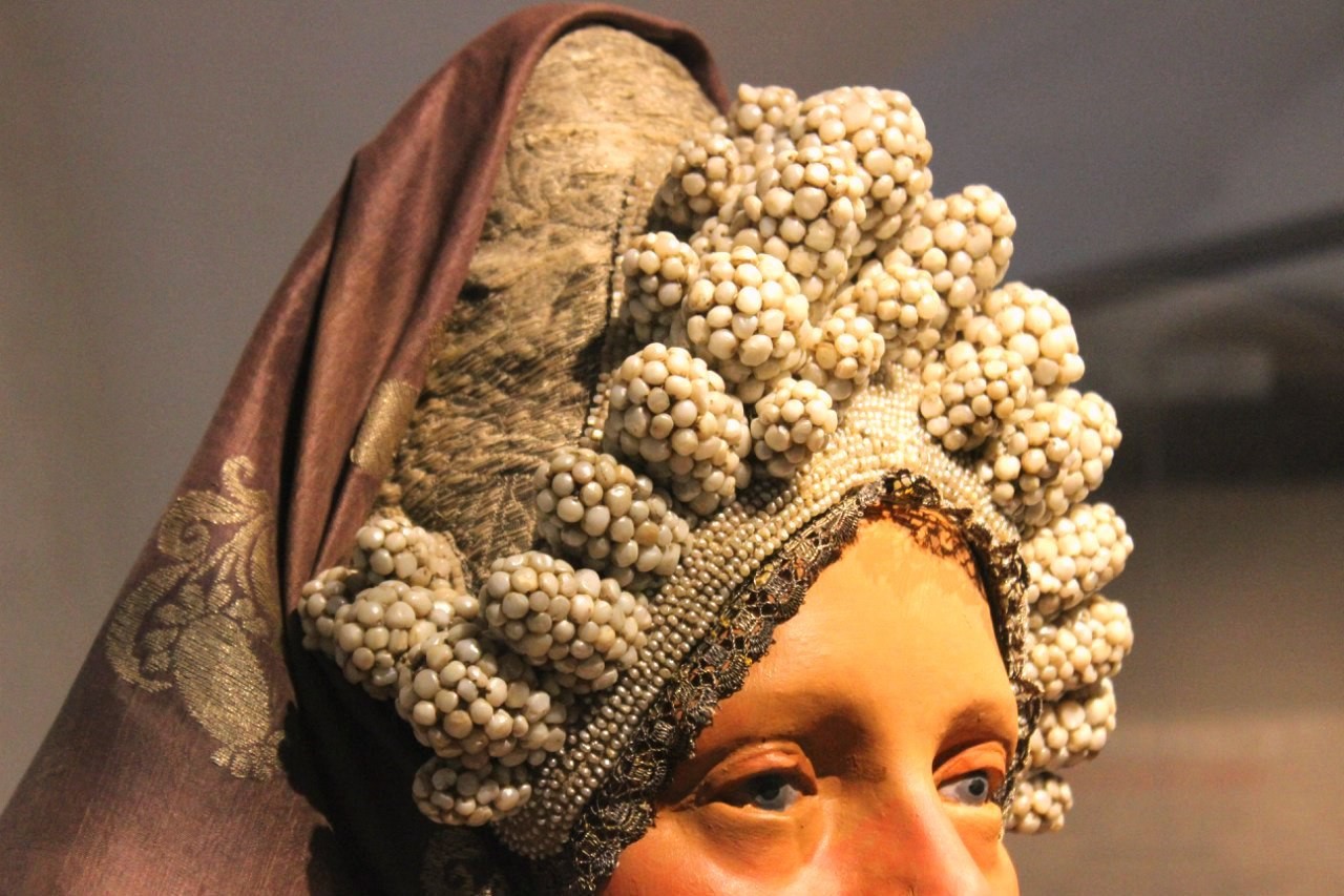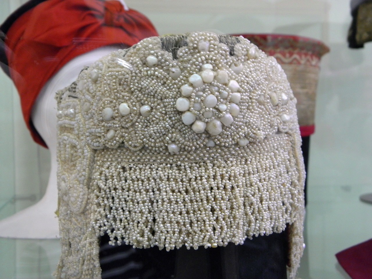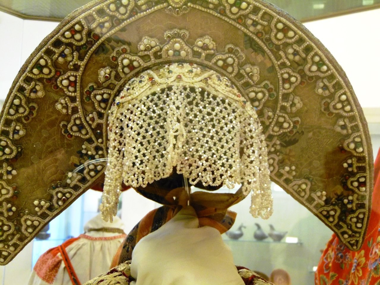 Экспозиция музея декоративно-прикладного искусства . Девичий головной убор