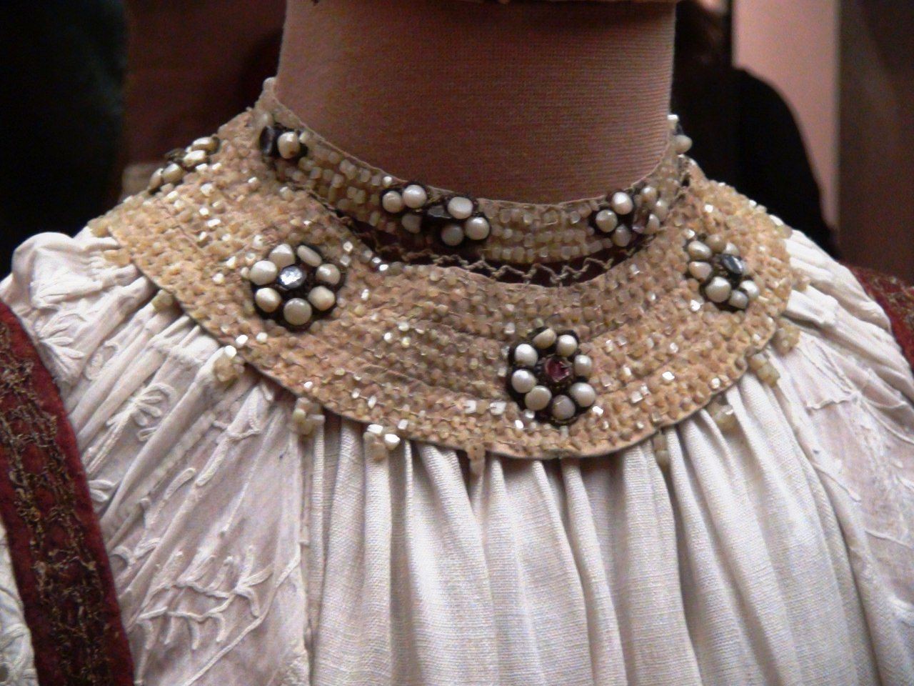 Центральная Россия. Конец XVIII — начало XIX века. Ожерелье: перламутр, стекло, лен, шелк; вышивка