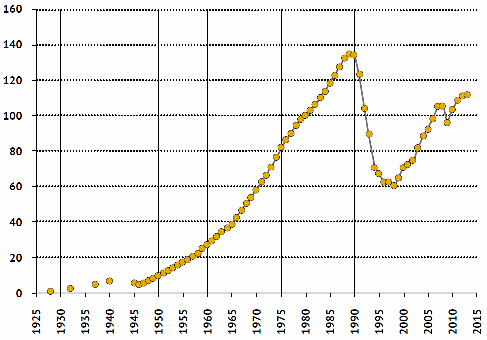 (Источник рис. 11.4-11.6: Гражданкин А., Кара-Мурза С. Белая книга России. Строительство, перестройка и реформы: 1950-2013 гг.)