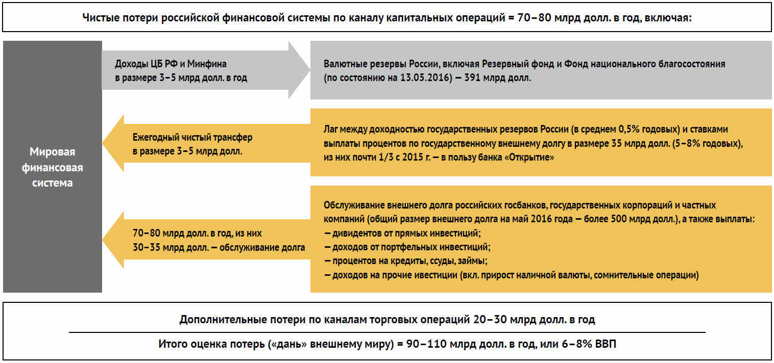 Рис. 3. Оценка трансферта России в пользу мировой финансовой системы