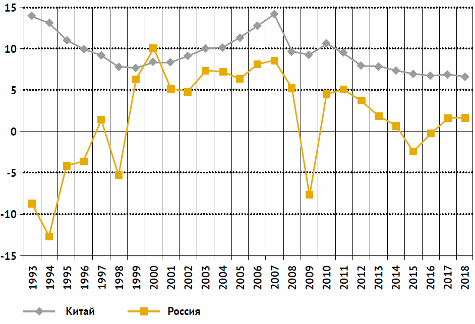 В России переход к рыночной экономике сопровождался разрушением институтов, обеспечивавших воспроизводство научно-производственного и интеллектуального потенциалов. В Китае эти институты не разрушались, а модернизировались, приспосабливались к функционированию в условиях рыночной конкуренции наряду с выращиванием новых институтов рыночной экономики. При этом государственная политика была направлена на сохранение и развитие научно-производственного потенциала, ориентировалась не на формальные преобразования, а на практические результаты.