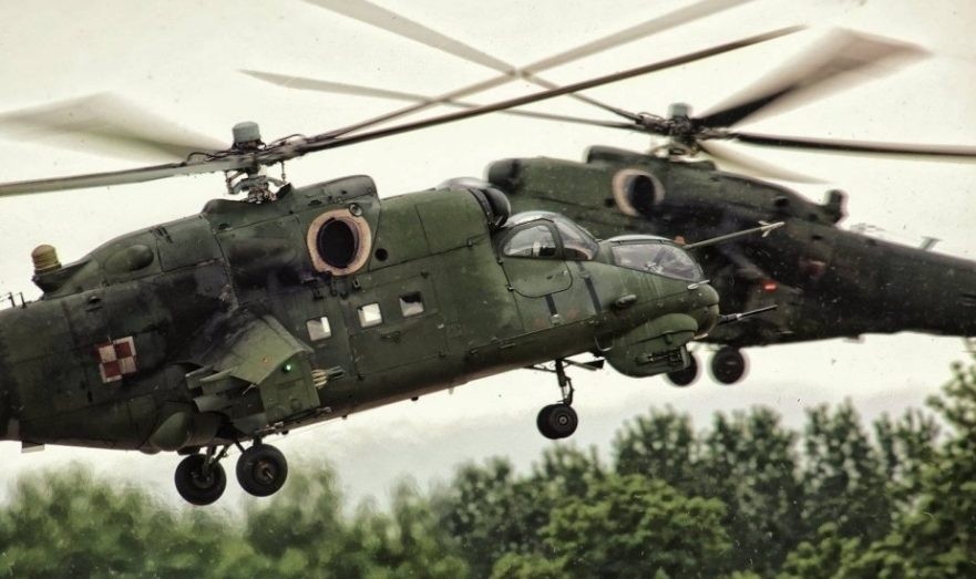 «Пара вертолётов Ми-24 осуществляет нанесение ударов неуправляемыми ракетами по неизвестным целям. Работа вертолётов осуществляется с небольшой высоты, однако, куда более примечательным является факт расцветки боевых вертолётов, – судя по второй боевой машине, расцветка практически полностью повторяет расцветку вертолётов ВВС Польши», — говорится в материале портала.