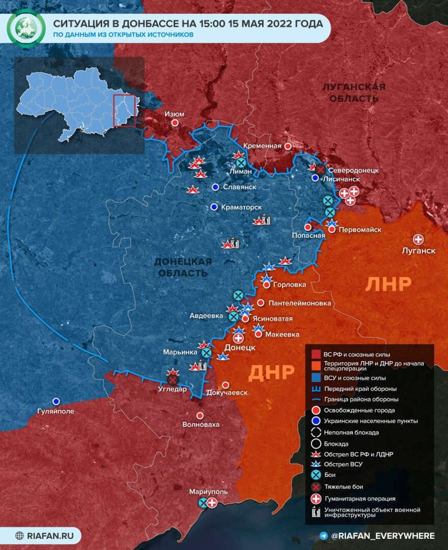 Карта боевых действий на Украине на сегодня, 16.05.2022: обстановка в ДНР и ЛНР, где ведутся бои