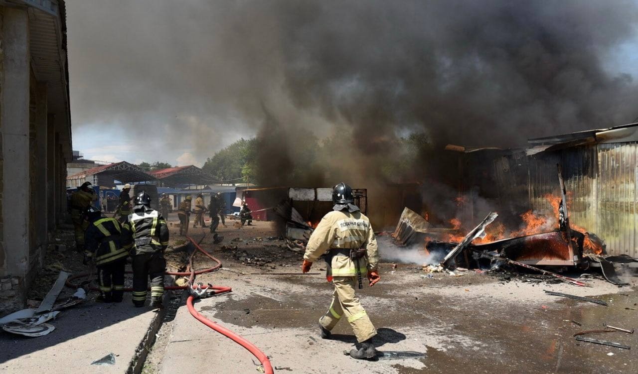 В ходе одного из нападений украинской армии снаряды упали на многолюдный рынок в Куйбышевском районе столицы. На торговых площадях начался пожар. По меньшей мере три человека, в том числе один ребенок, погибли, четверо ранены. Чуть позже еще один артиллерийский удар пришелся на заправочную станцию, где также произошло возгорание. Это может навредить не только окружающим объект улицам, но и экологии региона в целом. Сейчас на месте происшествий работают пожарные и другие экстренные службы.