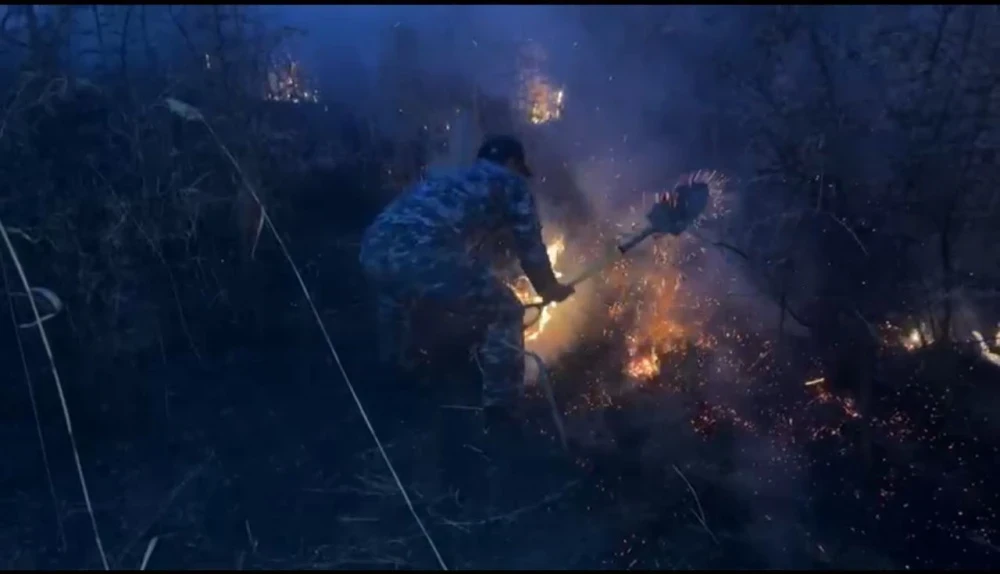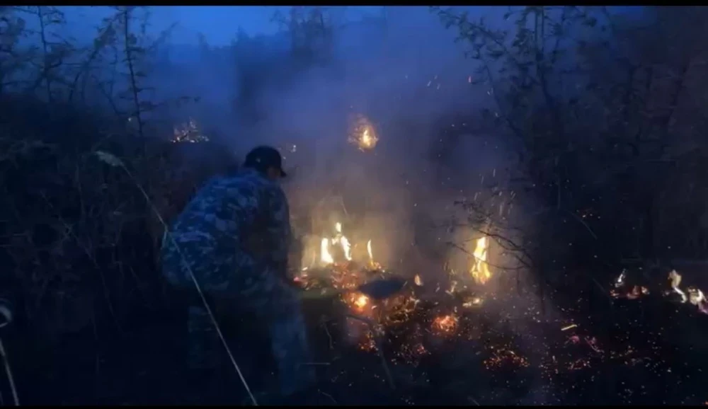 На Иссык-Куле сотрудники туристическо-экологической милиции остановили лесной пожар