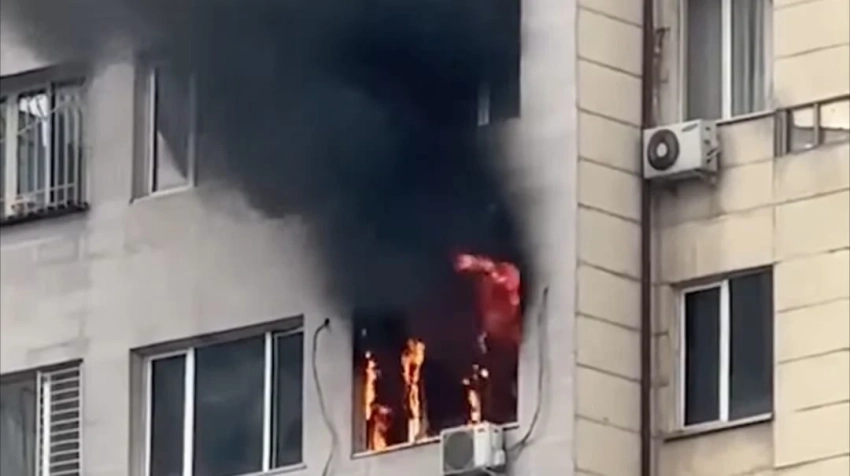 В Бишкеке горит квартира в многоэтажном доме на улице Абдумомунова