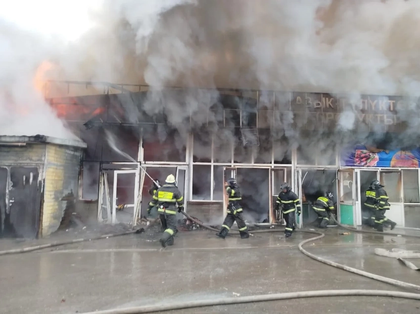 Сегодня в Первомайском районе столицы Кыргызстана, Бишкеке, возник пожар на рынке «Азиз», который находится на улице Махатмы Ганди. Согласно информации от Министерства чрезвычайных ситуаций Кыргызской Республики, для ликвидации огня было задействовано шесть пожарных расчетов, а также штаб и оперативная группа из Центра управления в кризисных ситуациях (ЦУКС). В настоящее время на месте происшествия продолжаются работы по полному тушению пламени.