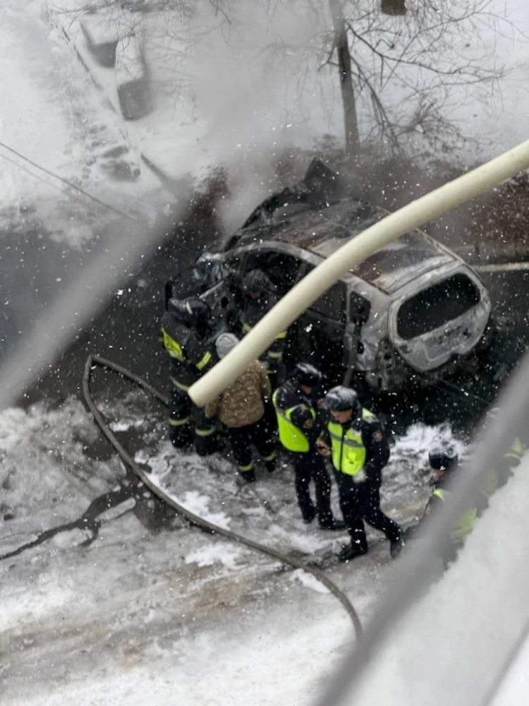 Легковой автомобиль сгорел во дворе жилого дома в Бишкеке.