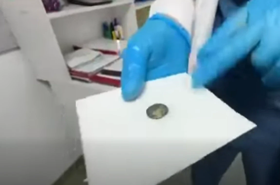 Фото Министерства здравоохранения КР. Извлеченная врачами батарейка